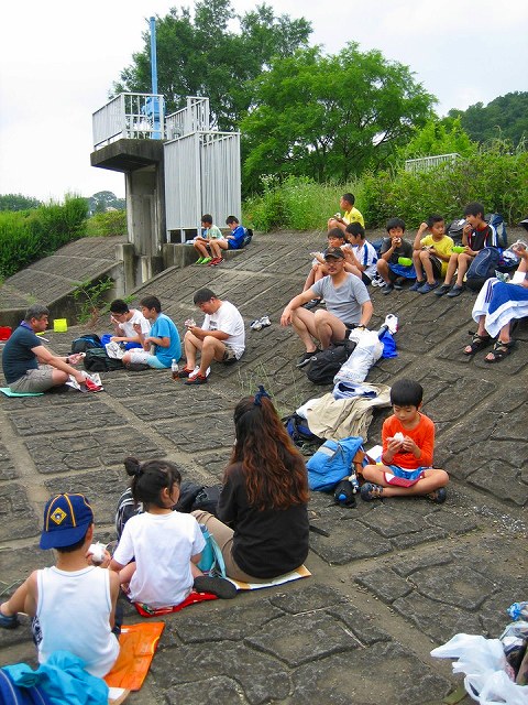 目的地に到着、スカウト達は水着に着替え、色とりどりのウォータシューズに履き替え、準備万端!